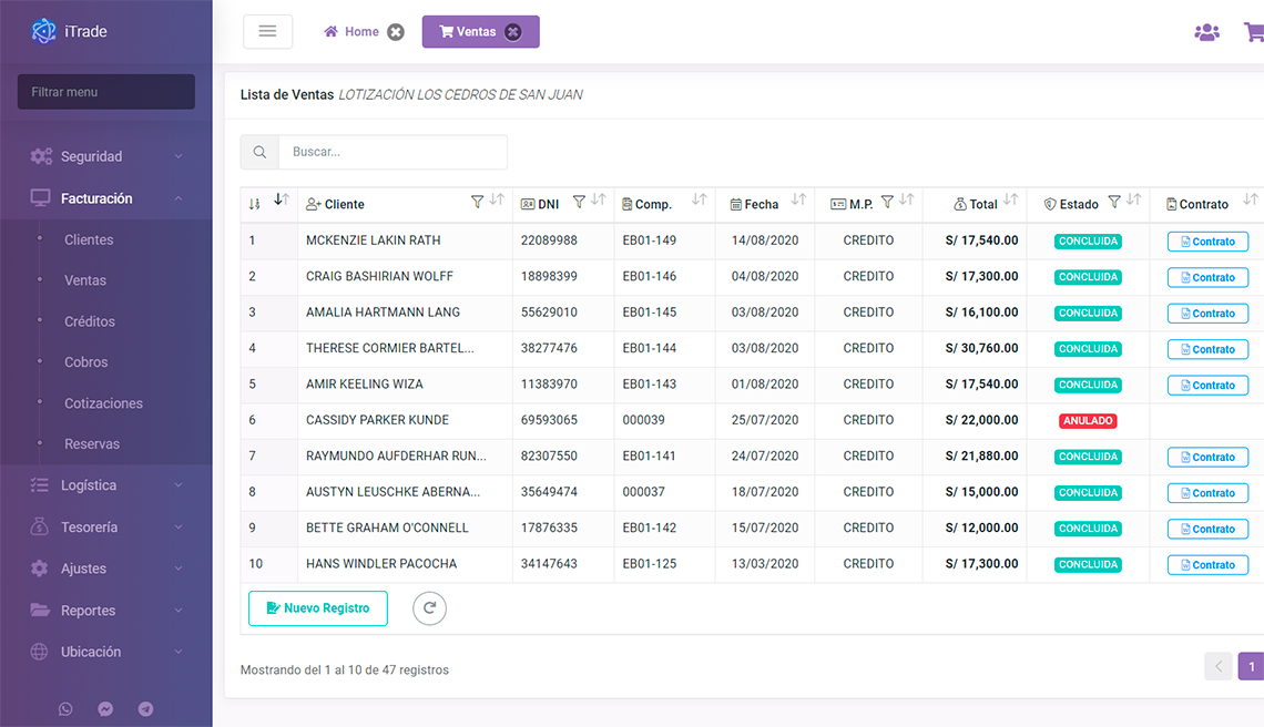 El módulo de ventas genera contratos de compra-venta y cronogramas de pagos de manera eficiente: